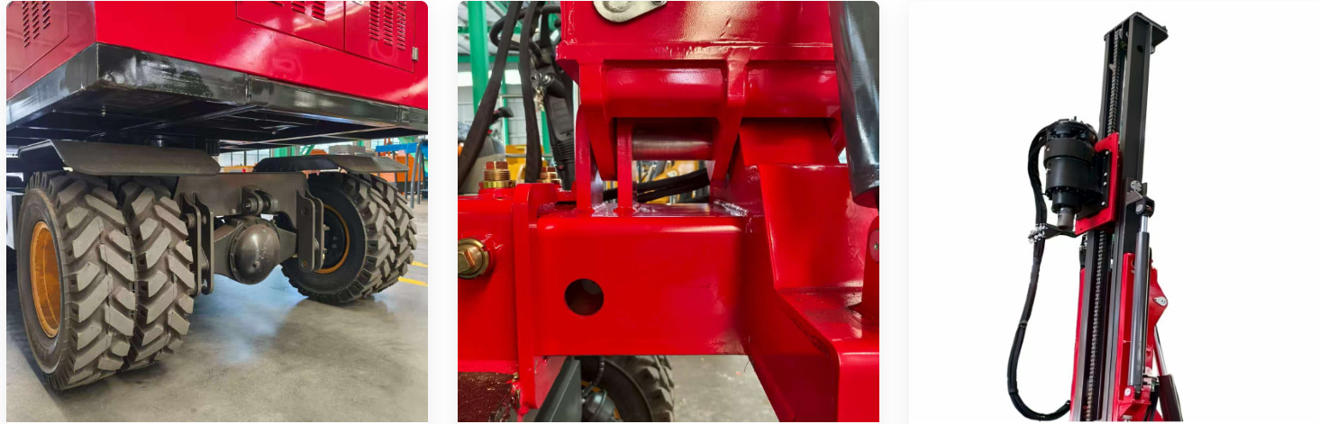 Los motores y rodamientos de giro de Zhongyi, fabricados con marcas nacionales reconocidas, permiten que el fuselaje gire 360°. Esto permite a los trabajadores de la construcción ajustar fácilmente el ángulo y la dirección de la plataforma de perforación en la obra, satisfaciendo así las diferentes necesidades operativas.